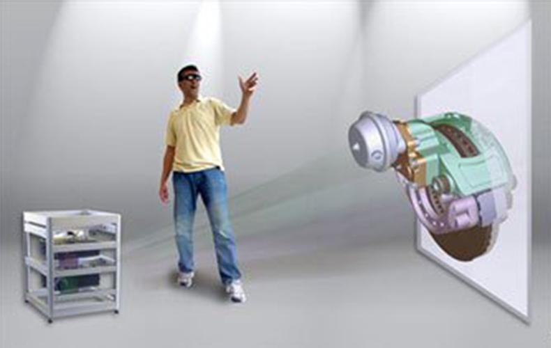 主动式立体技术构成:投影机、主动眼镜、眼镜同步器、专业计算机