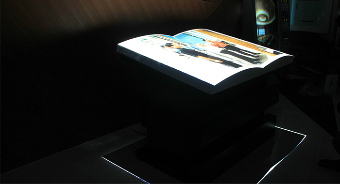 展厅虚拟翻书实现互动是离不开些部件和设备的,如:信号采集、信号处理、成像、辅助等部件;红外感应器、视频摄录机、热力拍摄器、计算机等设备。展厅虚拟翻书是先通过红外感应器感应到人们的动作(左右挥动、触摸),然后把感应数据传入到计算机中,计算机中的分析系统进行分析,接着会按照分析出的数据展现出相应的效果,这就是展厅虚拟翻书实现互动的过程。